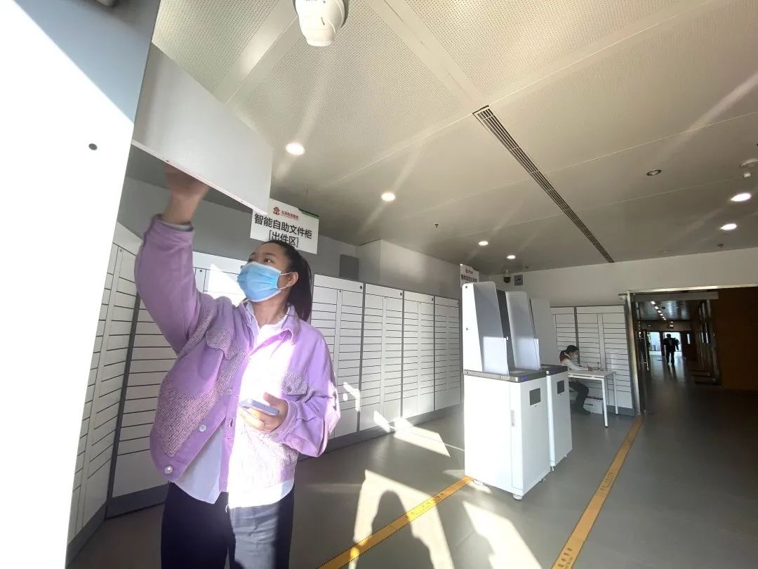 自助文件柜三部分,自助终端机提供事项查询、打印、材料提交等服务,在出件区和收件区,市民可通过人脸识别认