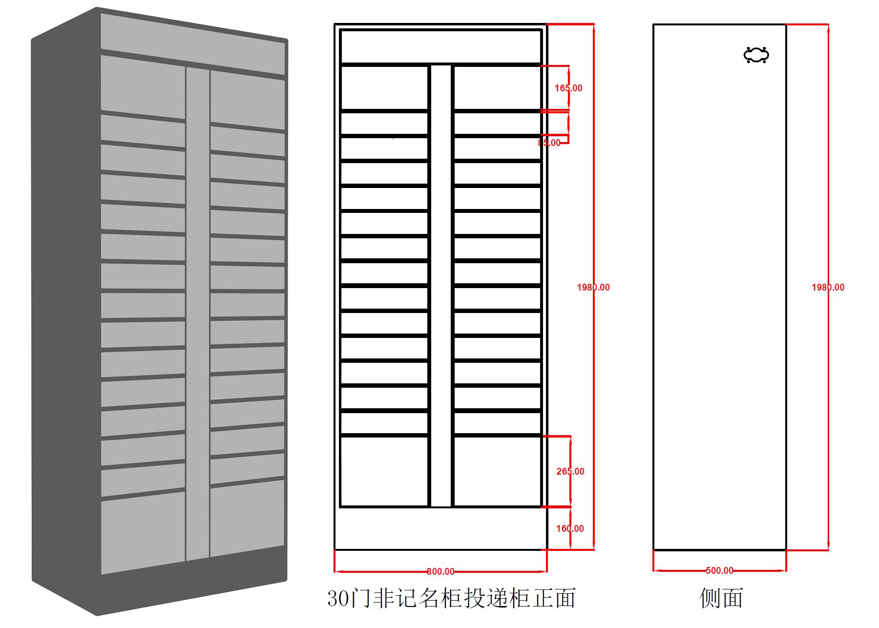 用于非固定人员的收取件,箱格类型可提供大、中、小三种,根据材料厚度自行选择。